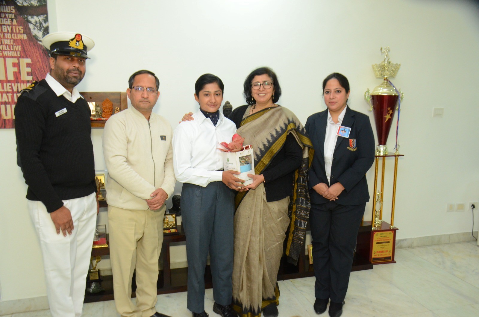 Cadet Vyomika Kaushik, an alumnus of the Naval Wing of our school, was also one of the guests on this special day. She has been selected for the 10+2 B. Tech Navy Entry for the prestigious Indian Naval Academy Course 114 at Ezhimala, Kerala, in May 2024. Upon completing her training, she will be commissioned as a Sub Lieutenant, embarking on a promising career in the Indian Navy.