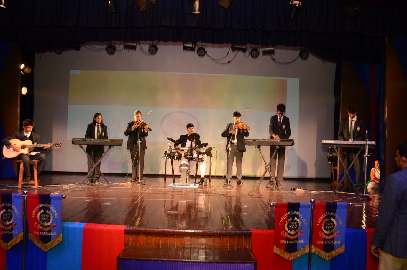 Delhi Public School, Faridabad celebrated NCC Day on November 18, 2019 to commemorate one year of successful running of the NCC program in the school. The Chief Guest on the occasion was Brig. Vijay Mehta (SM), Group Commander, NCC Group Headquarters, Rohtak. The esteemed guests on the occasion were Capt. Manoj Loomba, Staff Officer, Naval Attaché, Malaysia; Officiating Commanding Officer, Lt. CDR Ajay Rajpurohit; Subedar Major Satyavir Singh, 4 Haryana Girls Bn, Nuh and Subedar Sanjeev Kumar, Training JCO, 4 Haryana Girls Bn. The program began with a spirited patriotic poem rendition dedicated to those valorous men who sacrificed their lives for the motherland. A dedication to freedom fighter Bhagat Singh through a Hindustani vocal music presentation followed. The esteemed guests were felicitated with mementos and were warmly welcomed by Principal, Mr Anil Kumar in his address emphasising on the school motto-- Service Before Self. He highlighted how the NCC program is benefitting the students, the school and ultimately the society. An energetic and inspiring dance performance preceded the Chief Guest’s speech in which he appreciated the efforts of the students and urged them to follow their passion to achieve success. A digital presentation recounted the journey of the NCC cadets since the program was introduced in school. The audience was made aware of the various activities and responsibilities undertaken by young cadets. The Vote of Thanks was proposed by Vice Principal, Ms Jyoti Dhall. The program ended with the National Anthem.